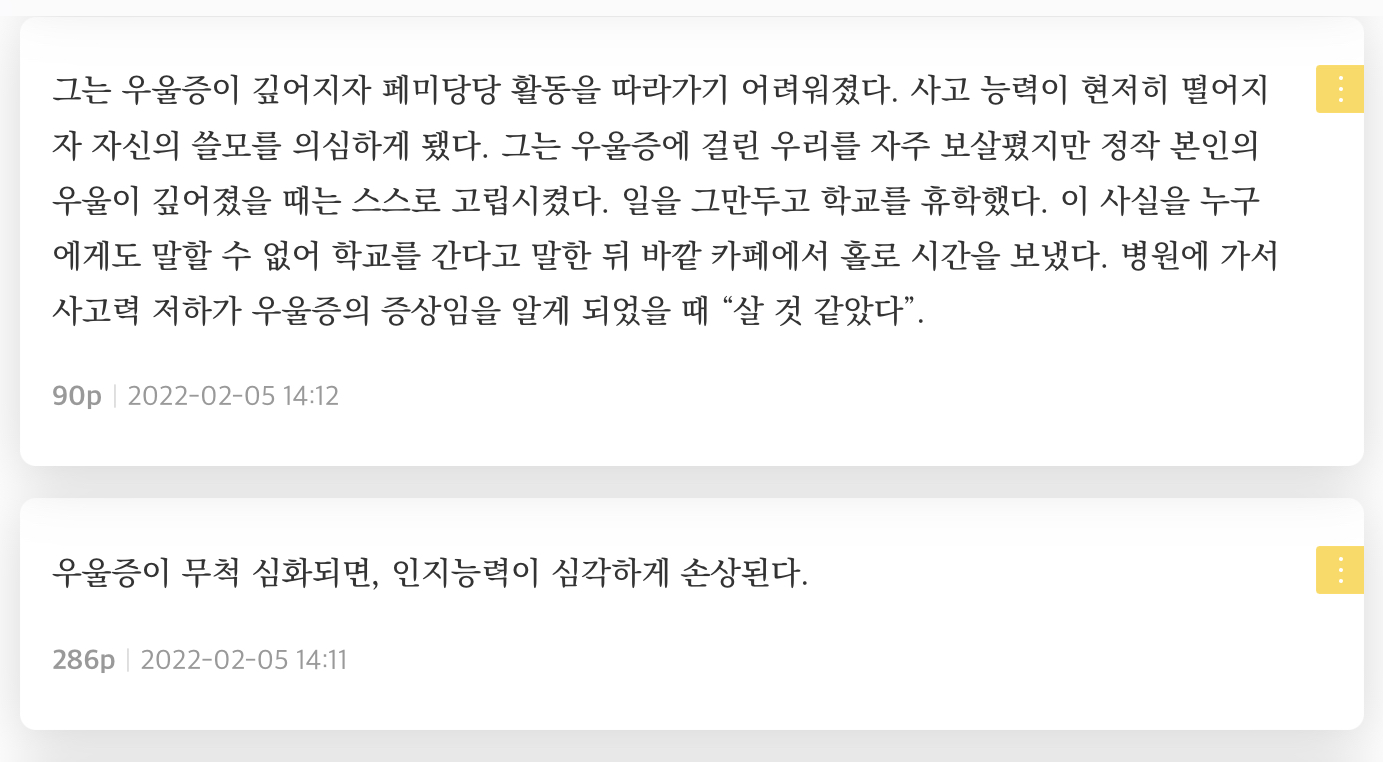 우연히라도 다 읽고 나니.. 멀게라도 우울증으로 고생하는 지인들이 얼마나 힘든 건지 알게 되었고