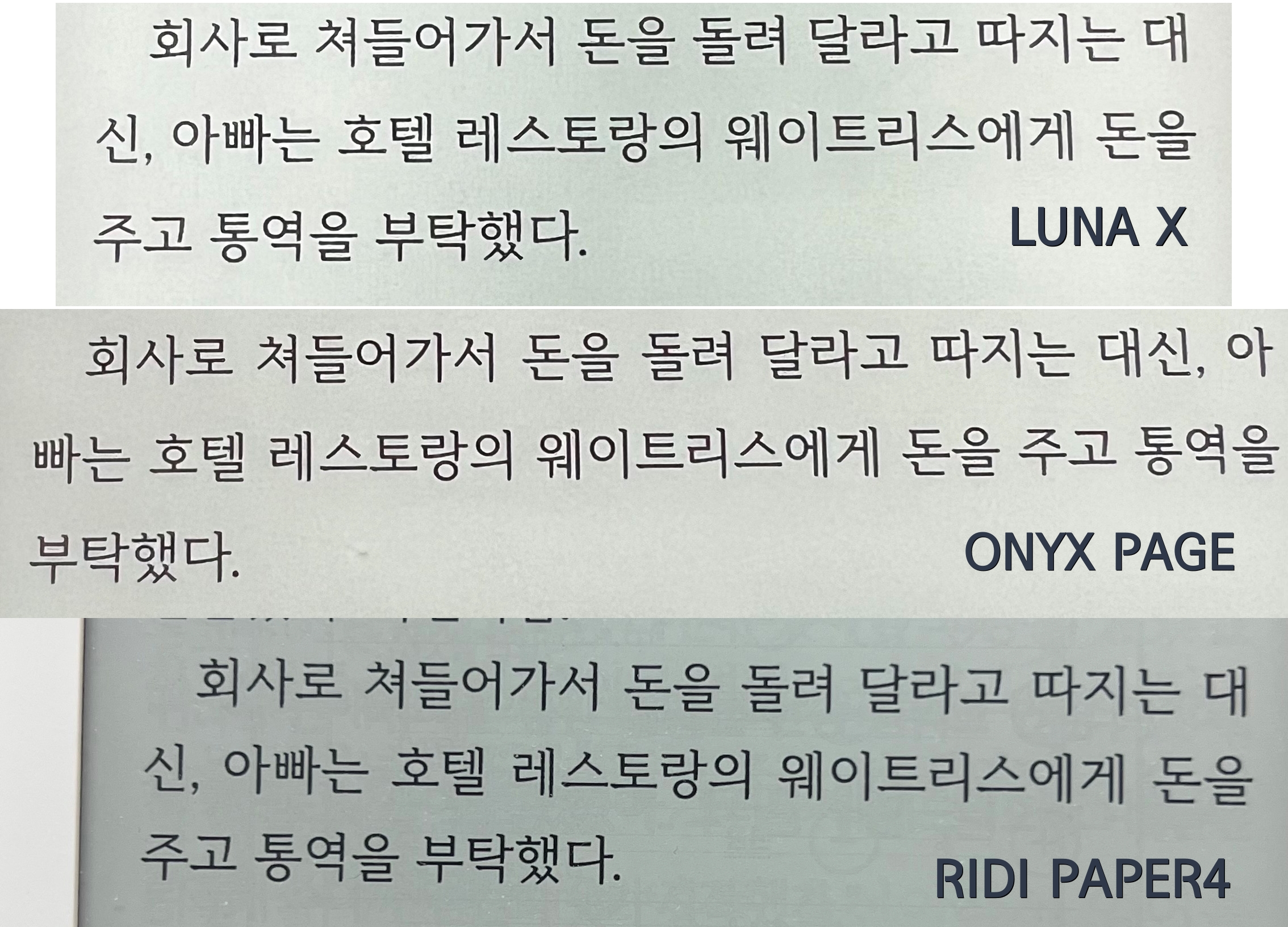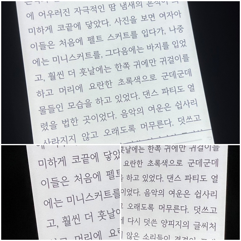 많은 유저들은 이북리더기의 액정이 얼마나 뽀얀지를 궁금해 합니다.