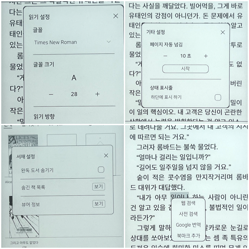 태블릿과 비교불가한 속도의 태생적 한계를 독서라는 목적성에 끼어맞추며 적당히 타협과 만족을 하기도 하죠.