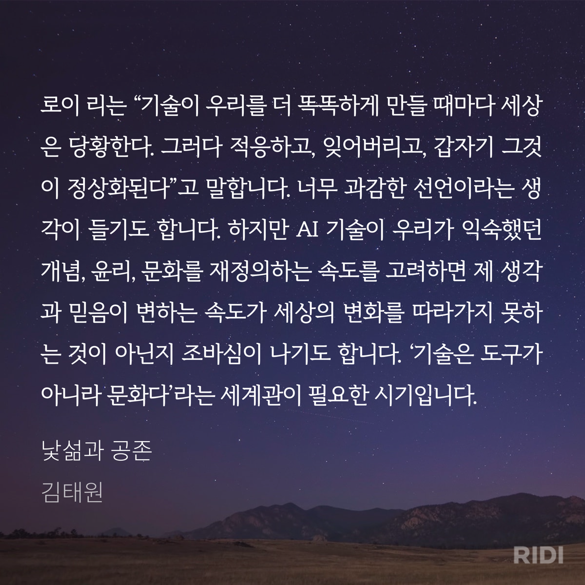 AI 시대를 살아가는 우리가 어떤 마음가짐을 가져야 하는지 라이트하게 짚어줌.